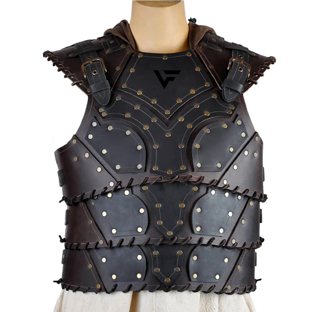 A cuirass is a piece of body armor crafted to protect the torso. It traditionally consists of two parts: a breastplate covering the front and a backplate covering the rear, joined together for full upper-body defense. Commonly used in ancient and medieval warfare, cuirasses were made from metal or hardened leather, providing a balance between protection and mobility. Some featured detailed engravings or embellishments, reflecting the status or rank of the wearer.
